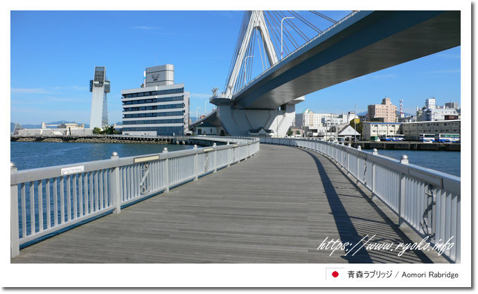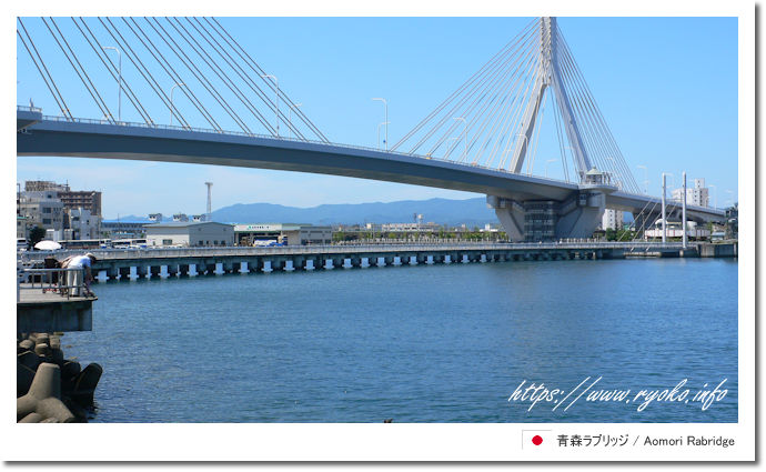 | Aomori Rabridge in Aomori Prefecture is a pedestrian-only bridge spanning Aomori Port, and is a popular tourist spot where you can enjoy the scenery typical of a port town. During the day, it offers a refreshing view of Mutsu Bay, the Bay Bridge, and Aspam, and at night it is lit up, with the light reflected on the sea creating a romantic atmosphere. It is close to Aomori Station, and visiting it together with Aoi Umi Park makes it a place where you can leisurely enjoy the charm of the port town of Aomori. | |||||||||||||